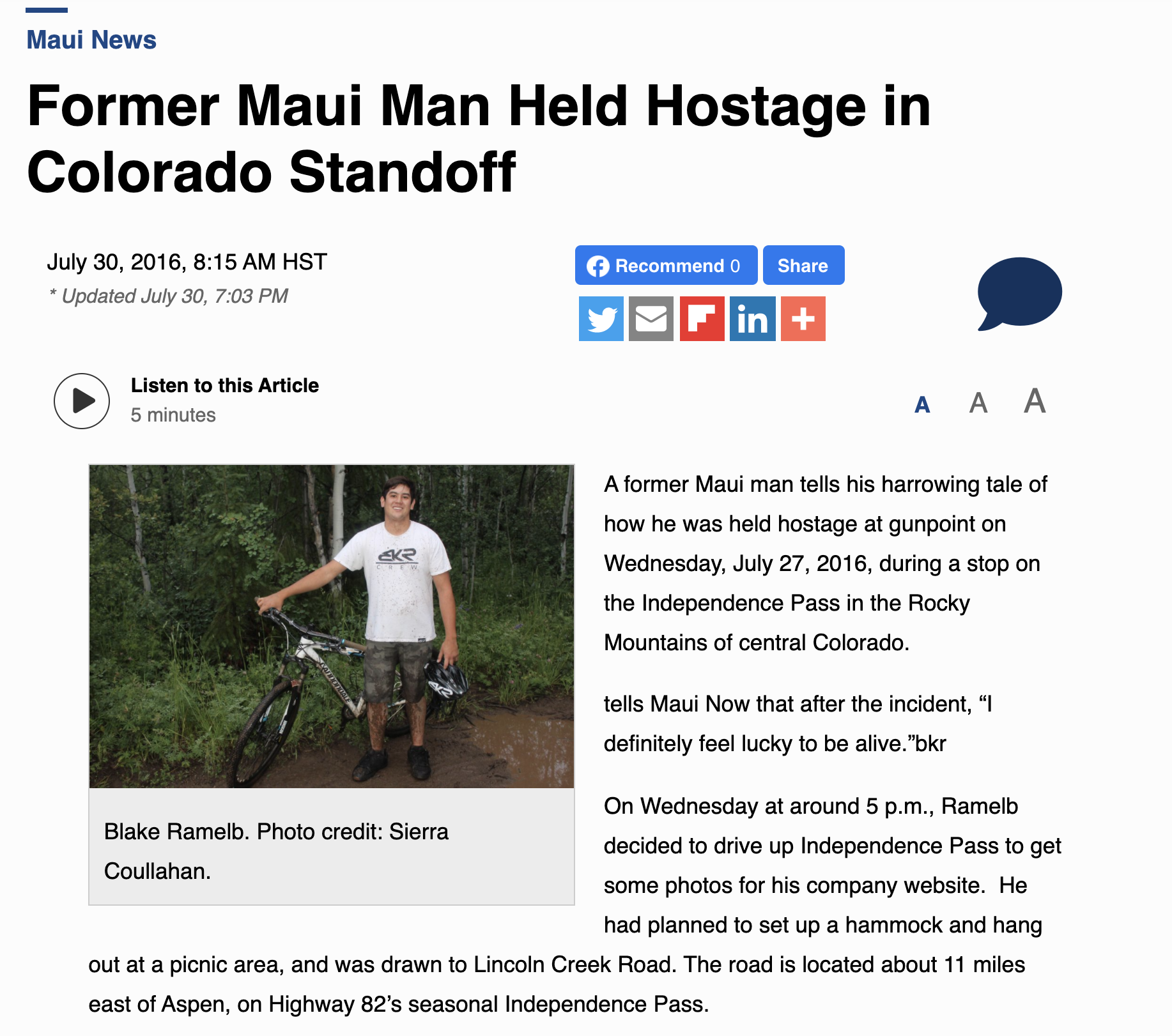 I had it, I was done. Almost giving up on life I saw the opportunity. He pushed himself more towards the center of the backseats still with a gun pointed at me. Then he turned around for a second. When I saw that initial movement I ran (hopped), behind the truck-bed. I saw the cop on the top of the road move in and I heard the gunman swear and yell, I figured the cop(s) on the hill above me moved in on the gunman. Knowing that I was still in his line of site I zig zagged and ran through any trees or objects that could keep my head away from any bullet(s) heading my way. Once I got up the road I was greeted by officers with AR’s, the witnesses and the other two hostages that had escaped well before me. I knew at that point I was alive.